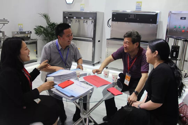 在主講區,講解員小蔡就企業最新研發成果向記者做了詳細的介紹。他表示,信息網絡化的發展,使越來越多校園步入了“互聯網+”時代,而榮事達亦應走在前列。比如,此次展會首次亮相的榮事達物聯網智能直飲機,就實現了校園直飲水的物聯網嫁接,微信小程序后臺管理,微信、支付寶掃碼支付等等,讓校園師生取水更加方便。除此之外,在前幾個月召開的教育部《學校直飲水設備運維模式適用性研究》項目討論會上,榮事達開發的“校園直飲水智慧管理系統”以創新獨特的云端運維管理,也得到與會領導和行業專家的一致肯定。