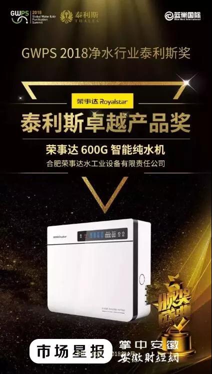 榮事達純水機榮獲“泰利斯卓越產(chǎn)品獎”