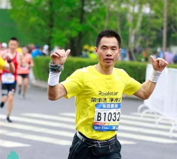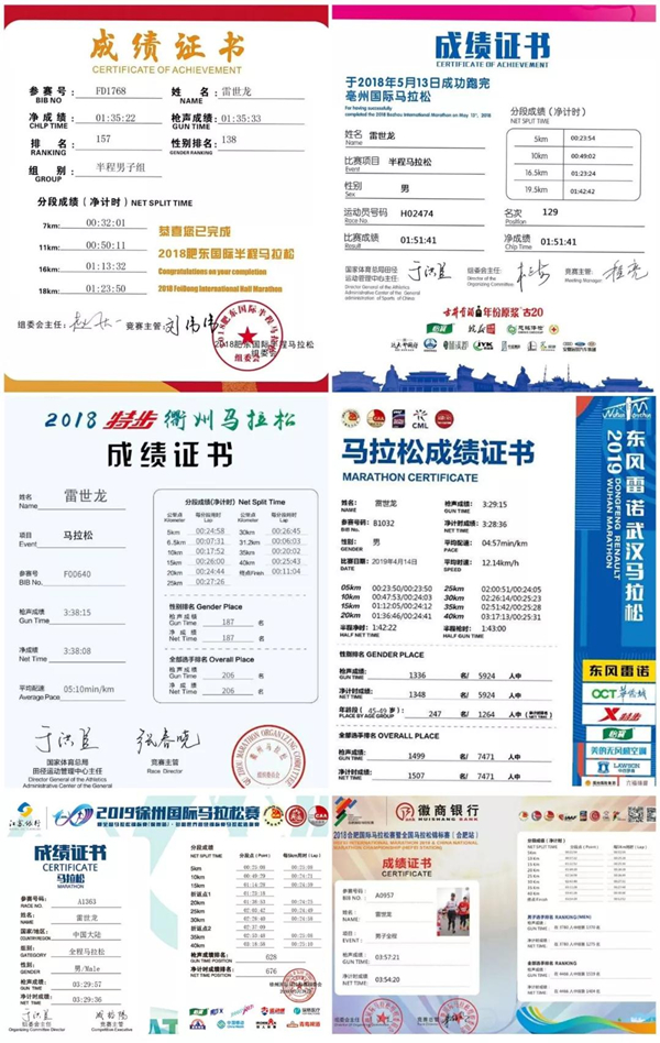 2017年,雷世龍開始接觸馬拉松運動,并加入合肥本地跑團,開始了自己的跑馬生涯。從2017年至今,雷世龍參加了大大小小二十多場馬拉松比賽,足跡遍布全國各地,其中包括多哈世界賽選拔賽徐州馬拉松比賽、中國四大滿貫賽事武漢馬拉松比賽等重要賽事,雷世龍憑借穩定的實力和出色的發揮順利跑完全程并取得了優異的名次。值得一提的是,雖然雷世龍正式接觸馬拉松只有兩年多,但他已成功全馬進入330(即3小時30分鐘內跑完馬拉松全程),獲得精英選手成績,并因此得到國內重要賽事直通名額?!斑^了今年我就五十歲了,但是我會一直跑下去,我的夢想是完成中國馬拉松大滿貫,我也正為此努力準備著?!?BR> 工作的繁忙阻擋不了雷世龍參加馬拉松的決心,為了順利完成今年六月份的蘭州雙金跑馬賽事,雷世龍現在每天都要堅持完成三十公里的跑步計劃,當談及跑馬對工作的影響時,雷世龍笑著說:“跑步賦予我們的不僅僅是強健的體魄,更多的是對精神的磨煉,唯有努力奔跑,才能讓人永葆激情和活力,才能更好地面對工作中的挑戰和困難。公司對我參加馬拉松是非常支持的,從帶薪休假到物資支持,為我提供了很多便利。同時我也希望自己能給年輕員工做一個表率,愿我們每一個榮事達人都能不忘初心,保持永遠向前奔跑的決心!”