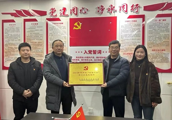 2024開工伊始,雙鳳經開區企業黨委書記朱正彪和黨建指導員陶如生親臨榮事達水工業,授予2023年度市級“雙強六好”非公企業黨組織榮譽銅牌。公司總裁支新郁和黨支部負責人肖曉曉熱情接待。
