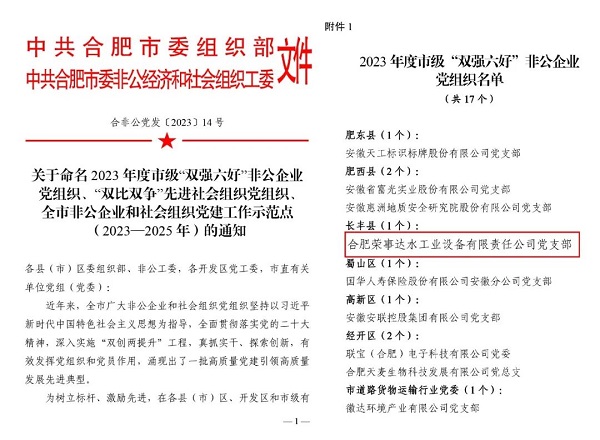 • 開年第一獎!榮事達水工業黨支部榮獲市級“雙強六好”非公企業黨組織稱號