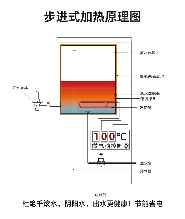 此次用于陜西省寶雞市鳳縣雙石鋪中學RSD-60K步進式開水器采用步進式加熱技術,多級過濾系統和七重保護功能等,杜絕千滾水、陰陽水,連續供應開水,節能省電,出水更健康,使用安全放心。