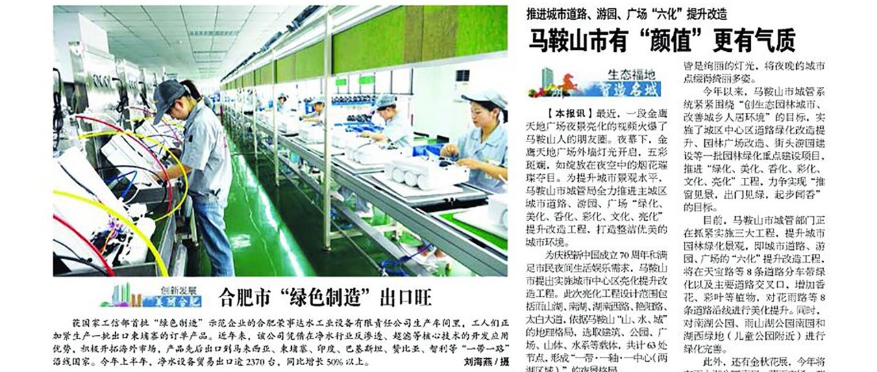 厲害了!!《歐洲時報》魅力安徽專版報道 榮事達綠色制造出口旺 一帶一路暢銷海外【報道原文】 獲國家工信部首批“綠色制造”示范企業的合肥榮事達水...